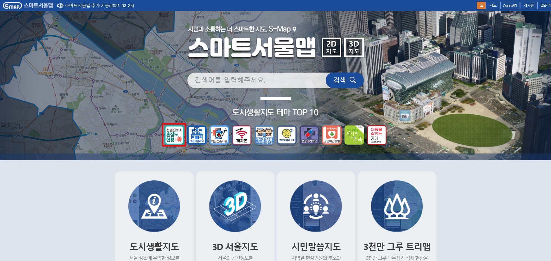 □ 서울시는 스마트서울맵에서 각 선별진료소의 혼잡도 현황과 주소, 운영시간 등을 상세히 확인해 시민들이 어느 곳에서 검사를 가장 빨리 받을 수 있는지 파악할 수 있고, 자동적으로 검사 수요가 분산되고 평균 대기시간도 줄어들 것으로 기대하고 있다. 또한, 시민들이 선별진료소에 일일이 전화를 걸어 대기시간을 물어보지 않아도 돼 바쁜 현장 인력들의 업무도 경감할 수 있을 것으로 기대된다.