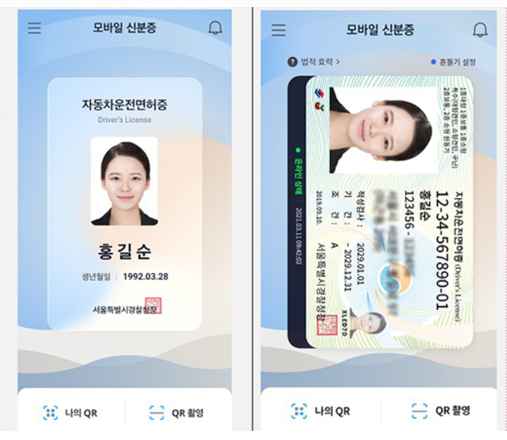 검증앱은 앱 마켓에서 내려받을 수 있으며, 검증앱으로 모바일 운전면허증의 QR 코드를 촬영하면 진위가 검증된 정보를 확인할 수 있다.